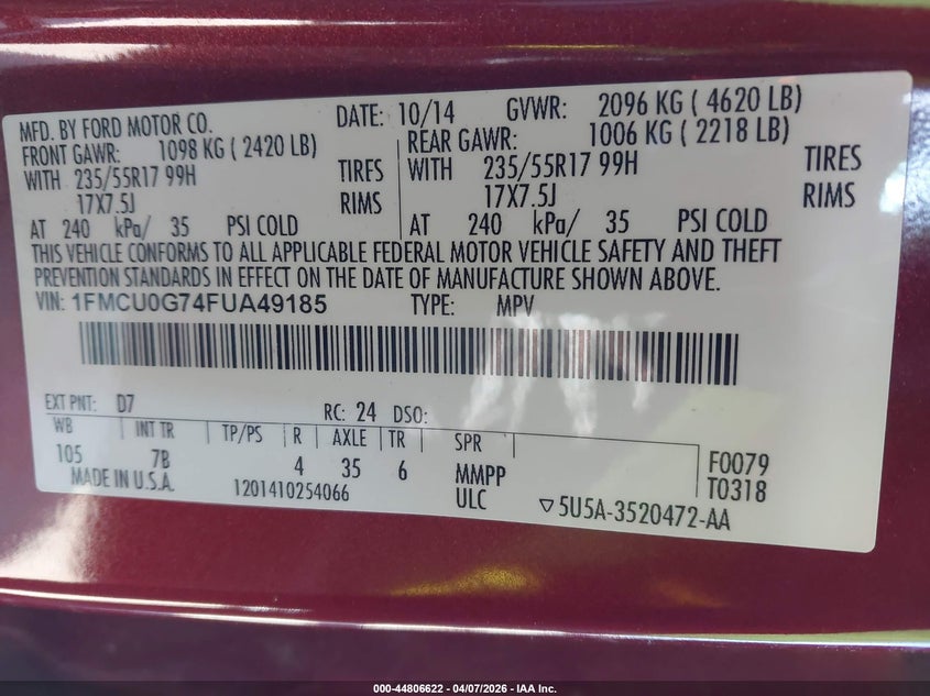 • 1FMCU0G74FUA49185