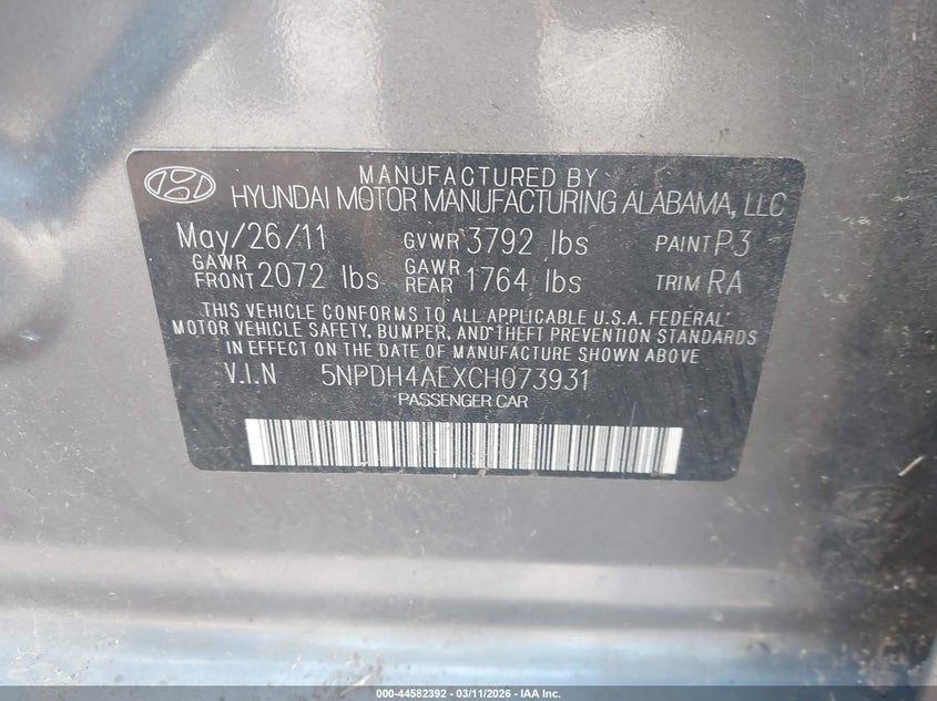 2012 HYUNDAI ELANTRA GLS for Sale in Bessemer, AL