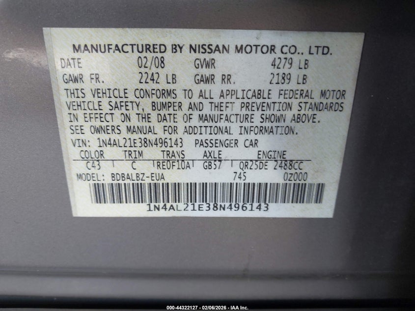 2008 NISSAN ALTIMA 2.5 S for Sale in Scott, AR