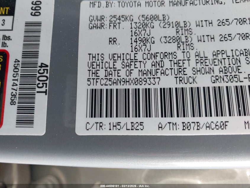 • 5TFCZ5AN9HX089337