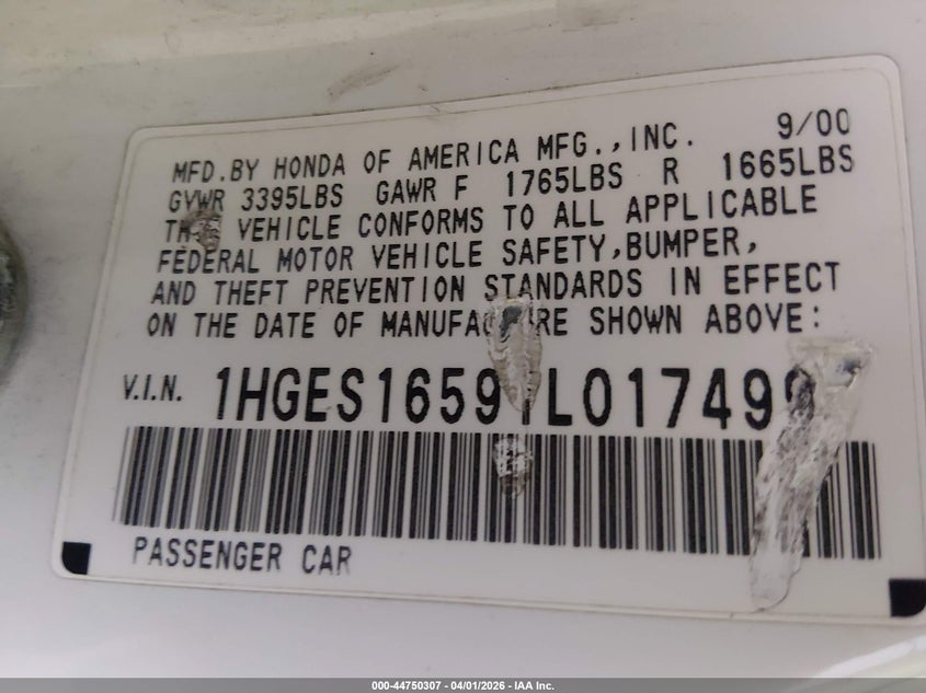 • 1HGES16591L017499