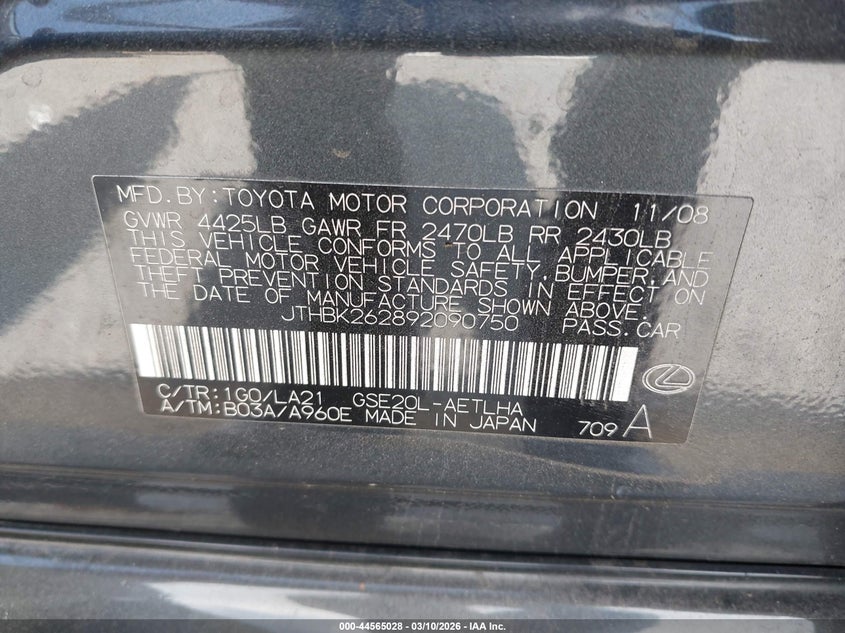 • JTHBK262892090750
