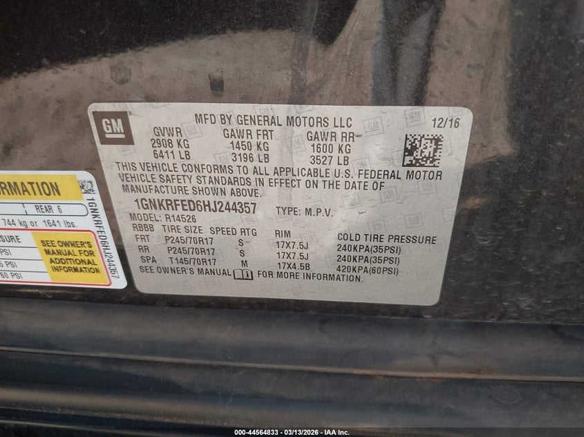 • 1GNKRFED6HJ244357