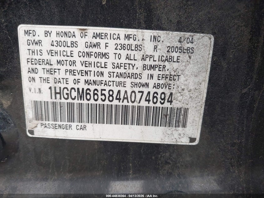 • 1HGCM66584A074694