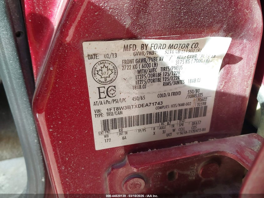 • 1FT8W3BTXDEA71743