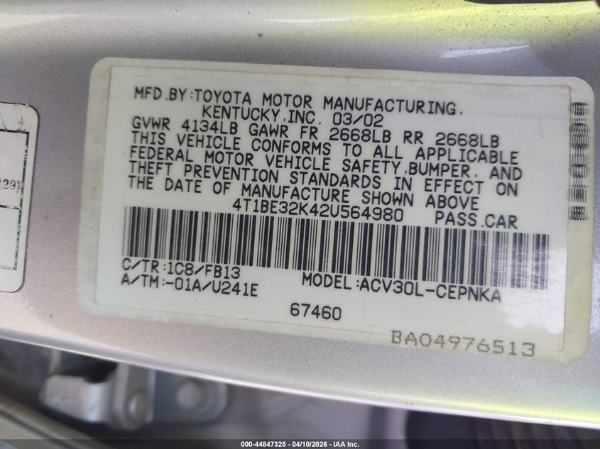 • 4T1BE32K42U564980