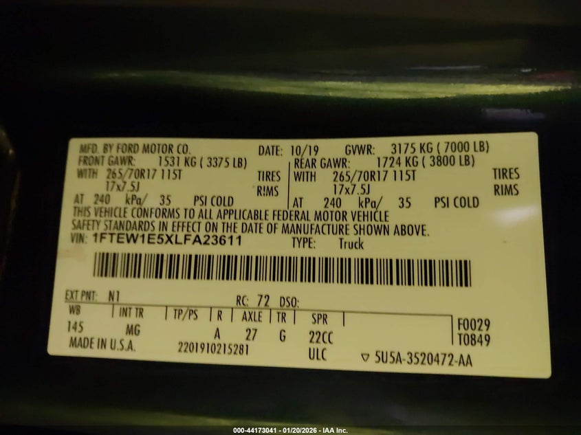 • 1FTEW1E5XLFA23611