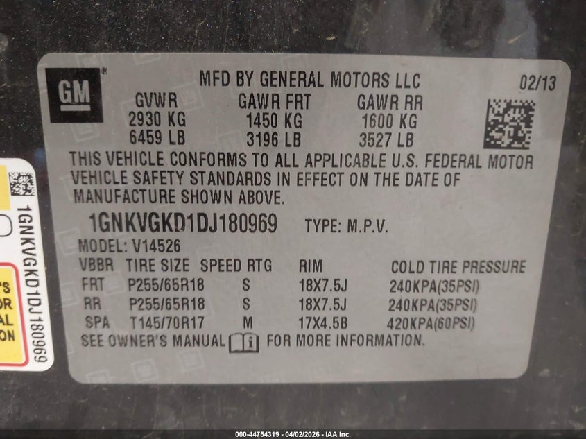 • 1GNKVGKD1DJ180969