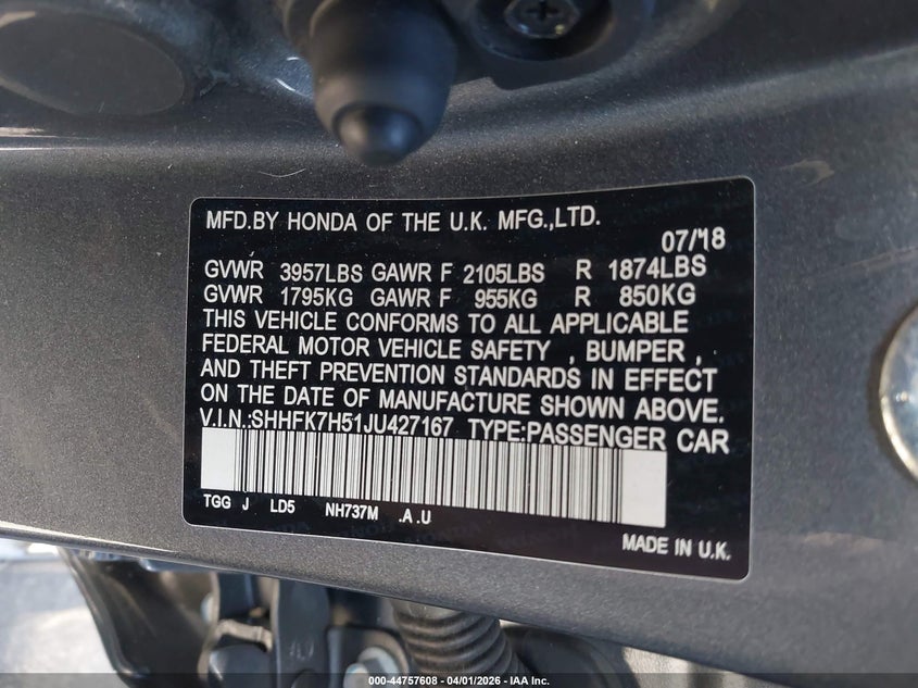 • SHHFK7H51JU427167