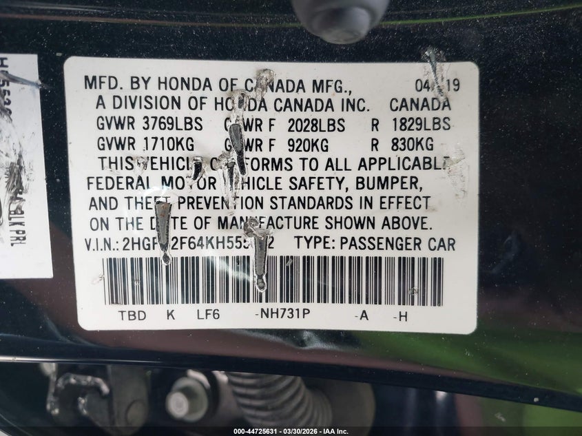 • 2HGFC2F64KH555302