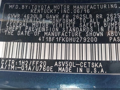 • 4T1BF1FK0HU279200