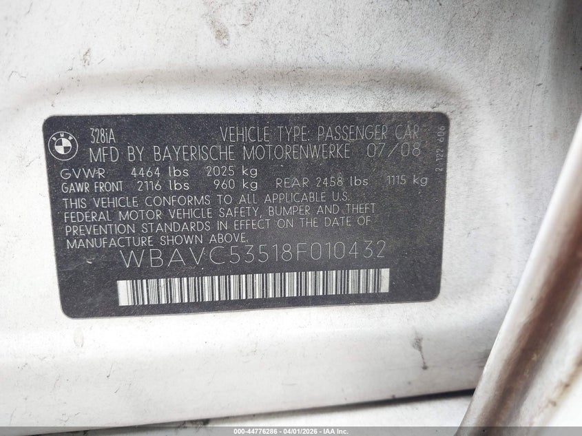 • WBAVC53518F010432