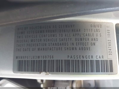 • WVWRP61JX3W160756