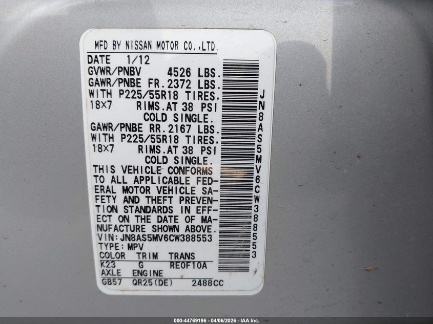 • JN8AS5MV6CW388553
