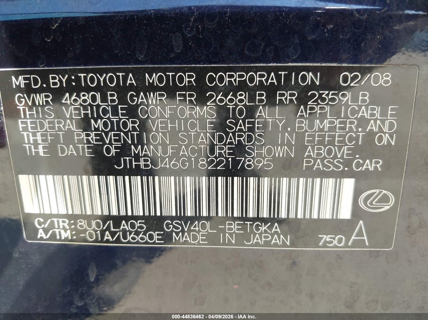 • JTHBJ46G182217895