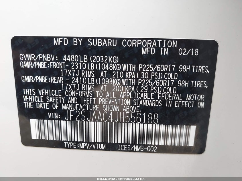 • JF2SJAAC4JH556188