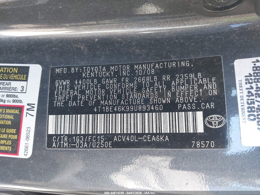 • 4T1BE46K99U893460