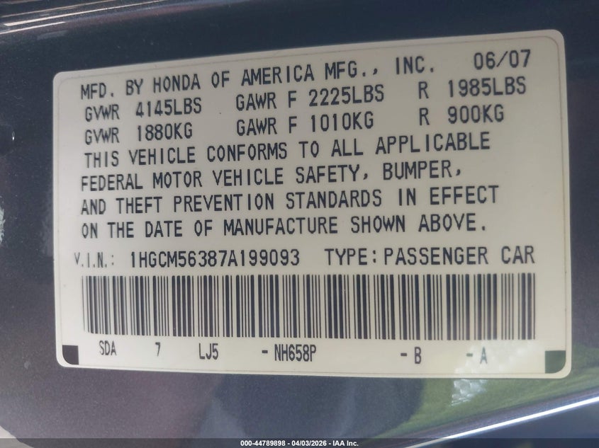 • 1HGCM56387A199093