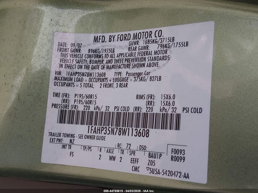 • 1FAHP35N78W113608
