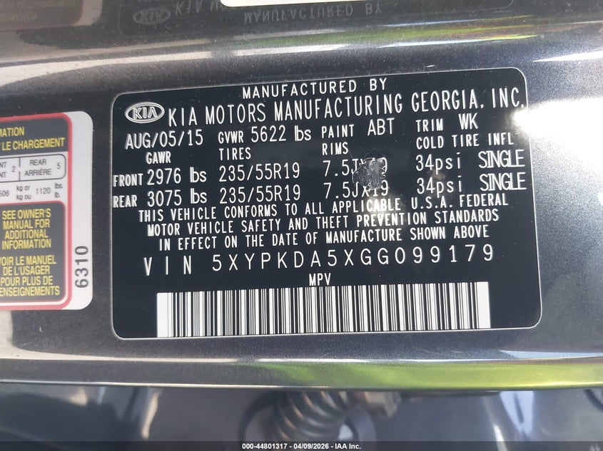 • 5XYPKDA5XGG099179