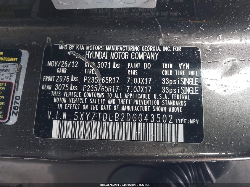• 5XYZTDLB2DG043502