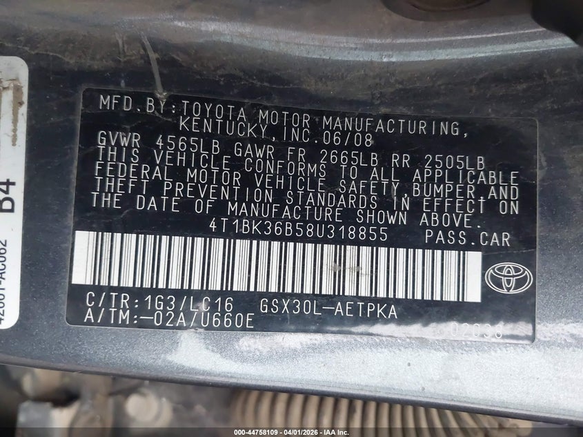 • 4T1BK36B58U318855