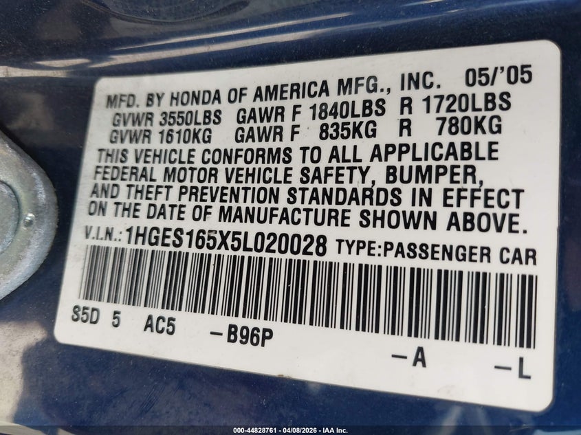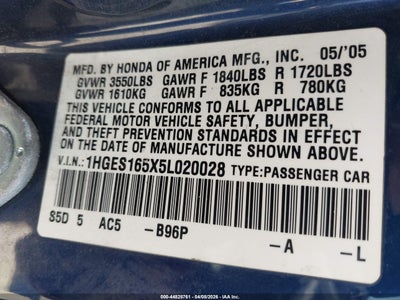 • 1HGES165X5L020028