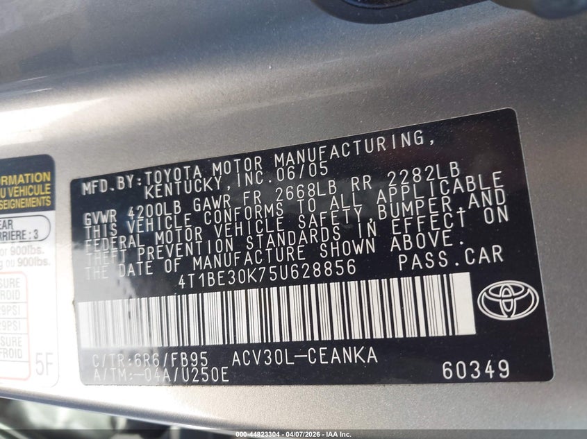 • 4T1BE30K75U628856