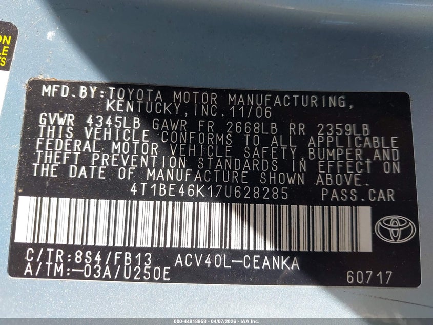 • 4T1BE46K17U628285