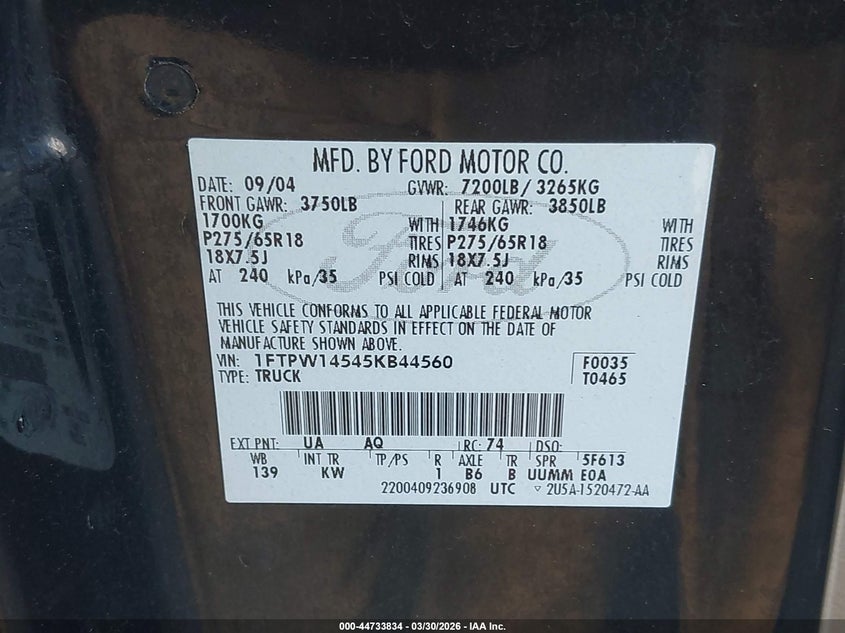• 1FTPW14545KB44560