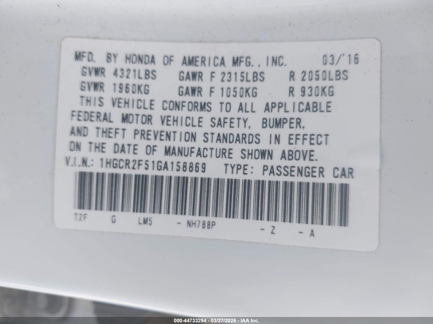 • 1HGCR2F51GA158869