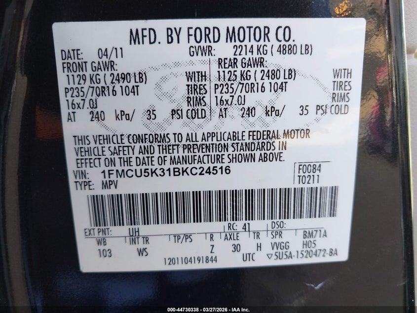 • 1FMCU5K31BKC24516