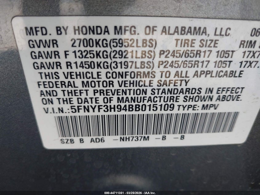 • 5FNYF3H94BB015109
