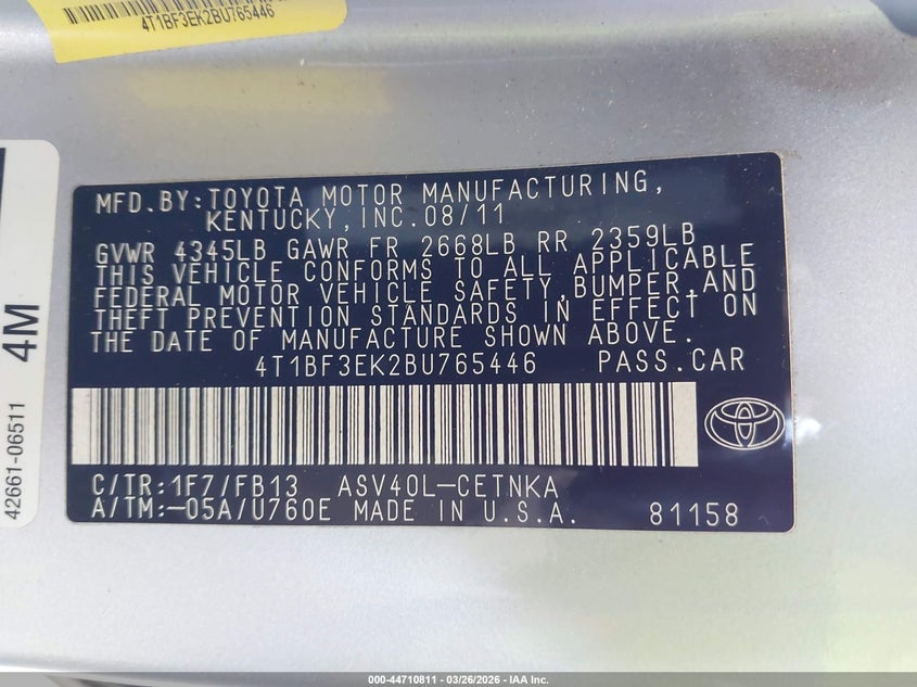 • 4T1BF3EK2BU765446