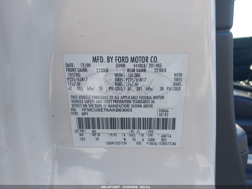 • 1FMCU0E76AKB63003