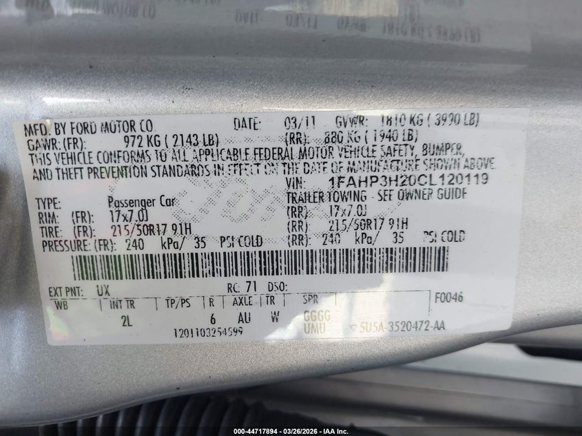 • 1FAHP3H20CL120119