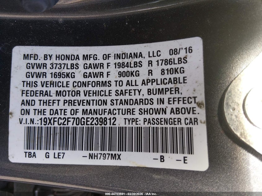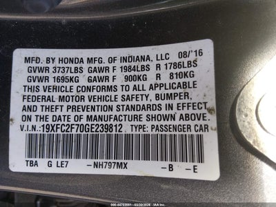 2016 HONDA CIVIC EX for Sale in Tukwila, WA