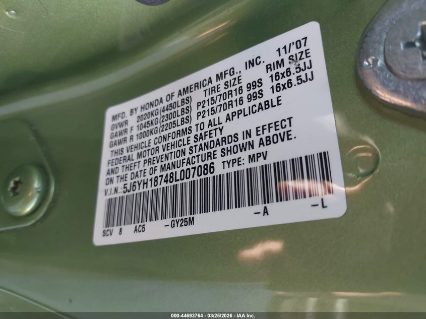 • 5J6YH18748L007086