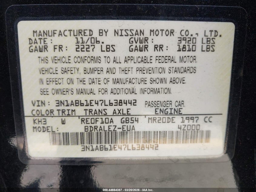 2007 NISSAN SENTRA 2.0S for Sale in North Hollywood, CA