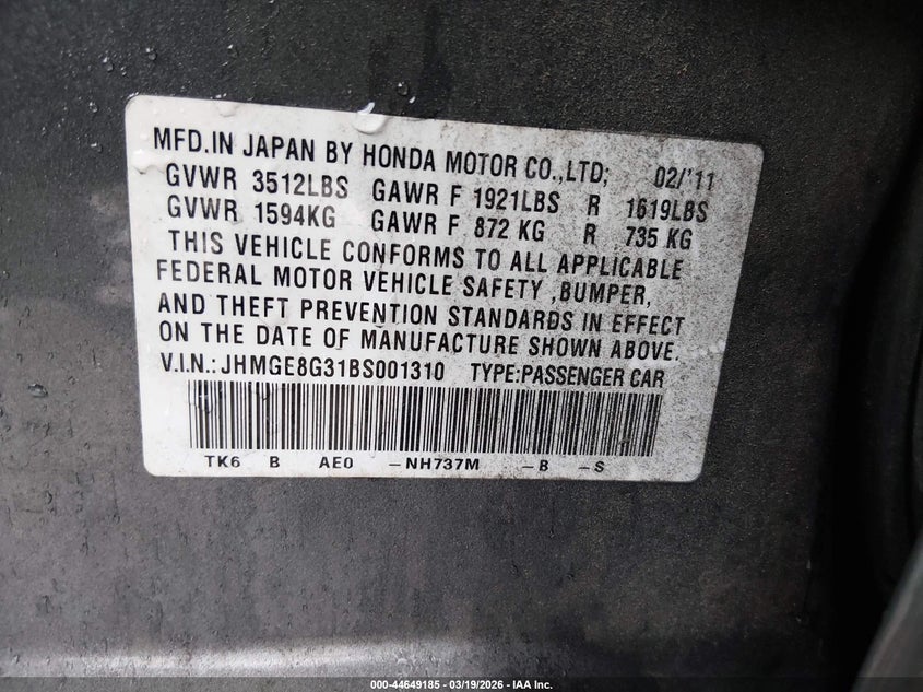 • JHMGE8G31BS001310