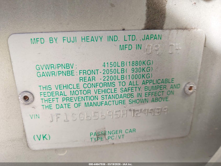 • JF1SG65695H729939