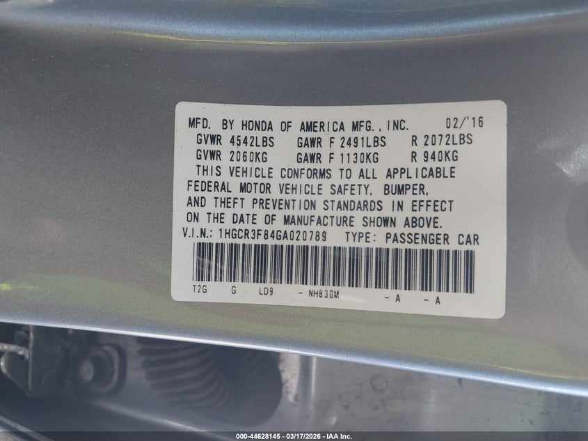 • 1HGCR3F84GA020789