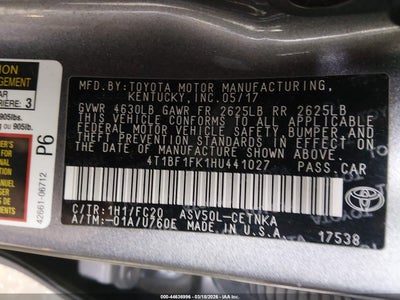 • 4T1BF1FK1HU441027