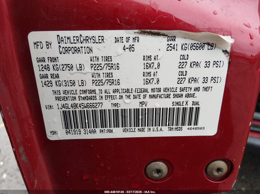 • 1J4GL48K45W666277