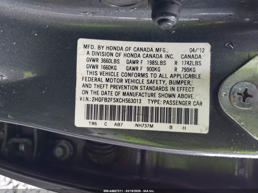 • 2HGFB2F5XCH563013