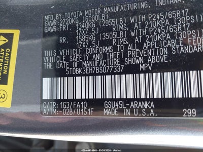 • 5TDBK3EH7BS077337