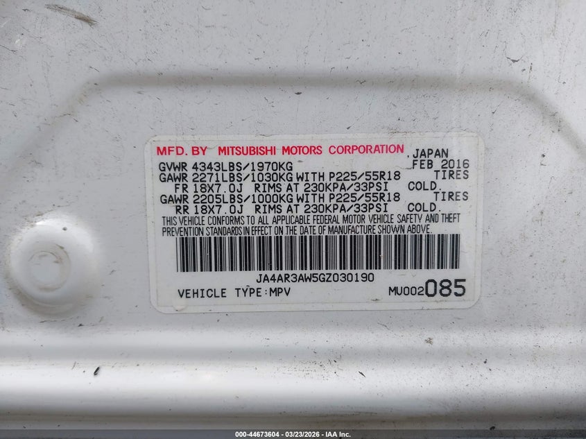 • JA4AR3AW5GZ030190
