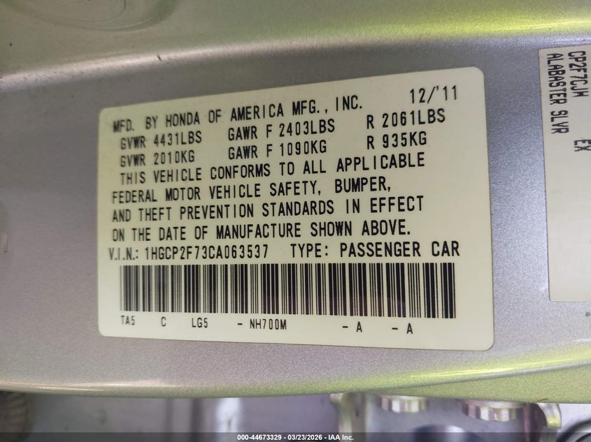 • 1HGCP2F73CA063537