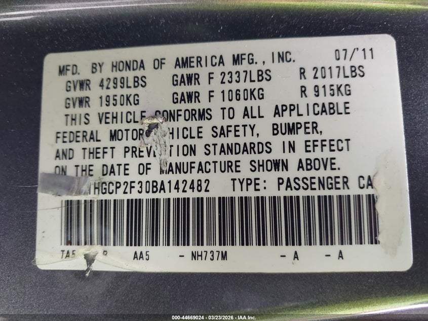• 1HGCP2F30BA142482