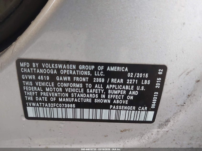 2015 VOLKSWAGEN PASSAT 1.8T WOLFSBURG EDITION for Sale in Tukwila, WA